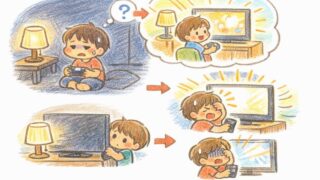 子育て 暗い部屋でゲームすると目が悪くなる?ブルーライトカットは必要か迷ったときの正解と対策 暗いところでゲームをすると視力が落ちるのか不安な人へ。ブルーライトカットが必須じゃない理由と、夜だけ効かせる考え方をやさしく整理します。設定でできる「まぶしさ対策」から、フィルム・メガネを買う前の判断までまとめました。 2026.02.06 子育て