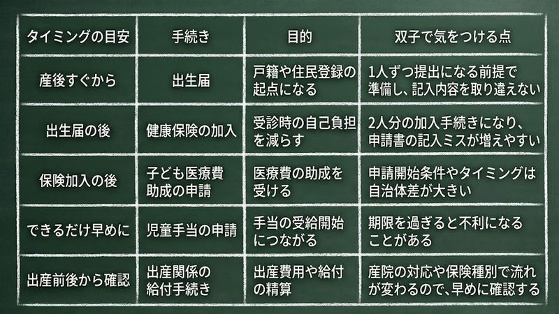 双子の出産後の手続きは量が多いからこそ、「全部を覚える」より「順番を固定する」ほうがうまくいきます。