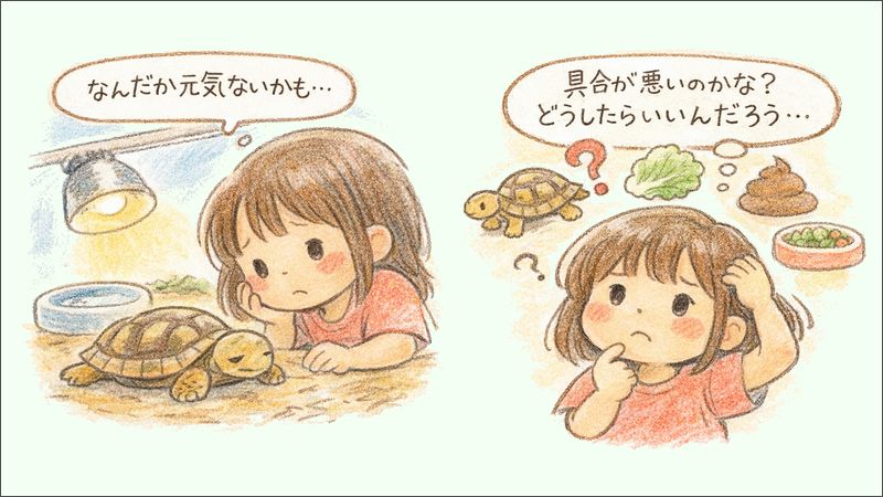 リクガメは環境の影響を受けやすいので、温度や光の条件が少しズレるだけで、食欲や動きが落ちることがあります。