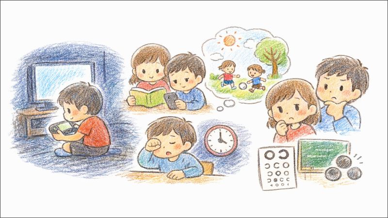 家でできる方針は、ゲームだけを犯人にせず、近くを見る行動の合計を見直して、屋外に出る予定を作り、回復する土台を整えることです。