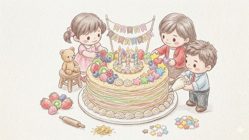 ミルクレープの誕生日デコレーションは「高さ」と「色どり」がカギです
