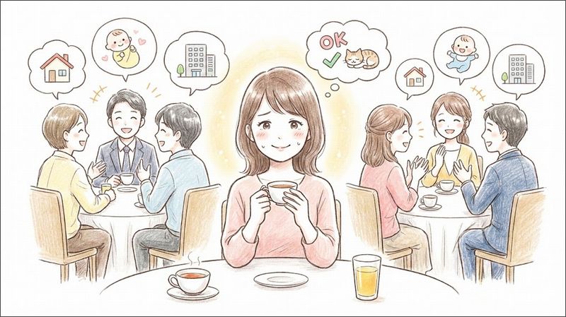 短く濁す言い方を準備したり、聞き役に回ったり、席を動いたりするだけでも、消耗は減ります。