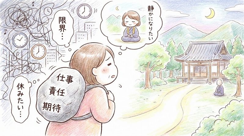 人間関係や仕事の圧が続くと、心の中にある静けさのスイッチを求めて「寺」とか「修行」とか、いかにも静かそうな世界が頭に浮かびやすくなるんですね。