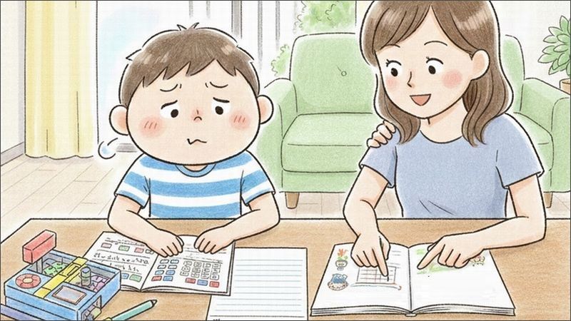計算や漢字は答えを渡すより、どこが違うか一緒に見つける声かけが力になります。