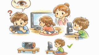 子育て 暗いところでゲームすると目が悪い?画面との距離は何cmが安心かわかりやすく解説 暗い部屋でゲームしていて「近すぎるかも」と不安なあなたへ。スマホ・Switch・テレビ別に距離の目安(30cm/50cmなど)と、測らなくても守れる工夫、親子で続く合言葉までわかりやすくまとめました。 2026.02.09 子育て