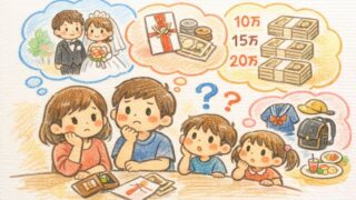 冠婚葬祭 兄弟の結婚式のご祝儀はいくら?家族4人で出席するときの相場と決め方ガイド 兄弟の結婚式に家族4人で出席するとき、ご祝儀はいくら包むのが正解?夫婦分の相場、子ども分の考え方、年上・年下での違い、端数や偶数の扱いまで、迷いやすいポイントをわかりやすく整理します。 2023.12.03 2026.02.15 冠婚葬祭