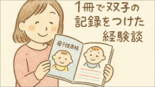 双子の母子手帳を1冊で管理したいママへ。ページの使い方・色分け・記録が続かないときの工夫まで、先輩ママのリアル体験を交えて詳しく紹介します。