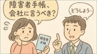 仕事 障害者手帳は会社に言うべき?迷ったときの判断基準と安心できる選択肢 障害者手帳を手にした日、真っ先に頭をよぎったのは「これって、会社に言わなきゃダメなのかな」という不安でした。手帳を取得したことで何か大きく変わってしまうような気がして、胸の奥がざわざわして、夜になってもなかなか眠れない日が続きました。職場の... 2023.05.30 2025.09.19 仕事